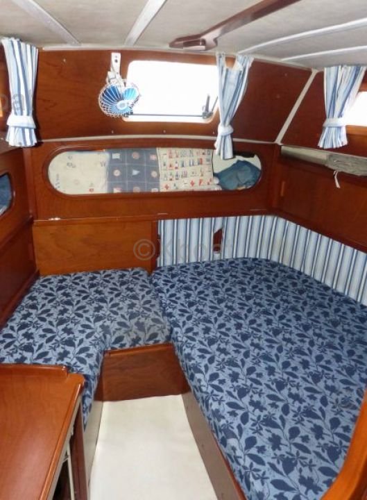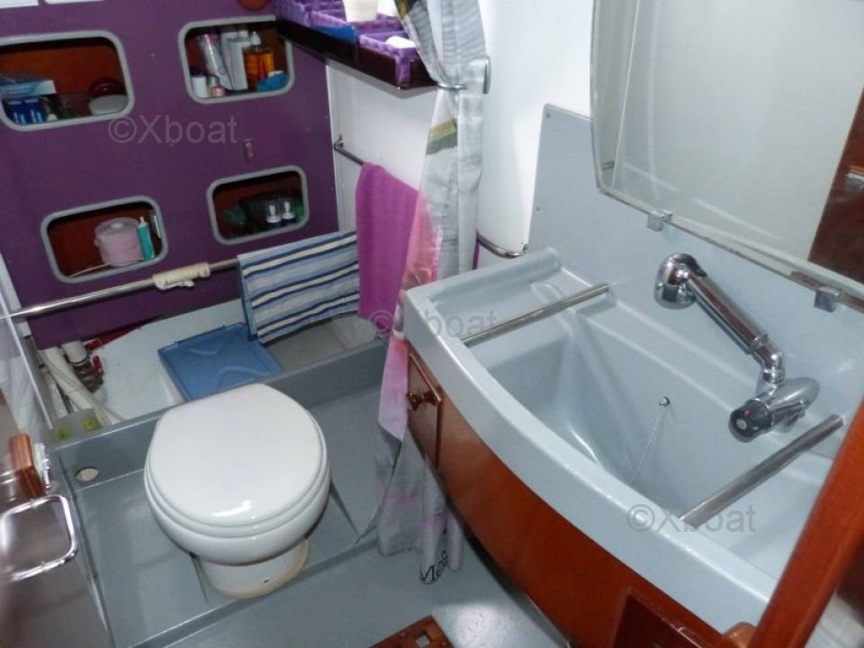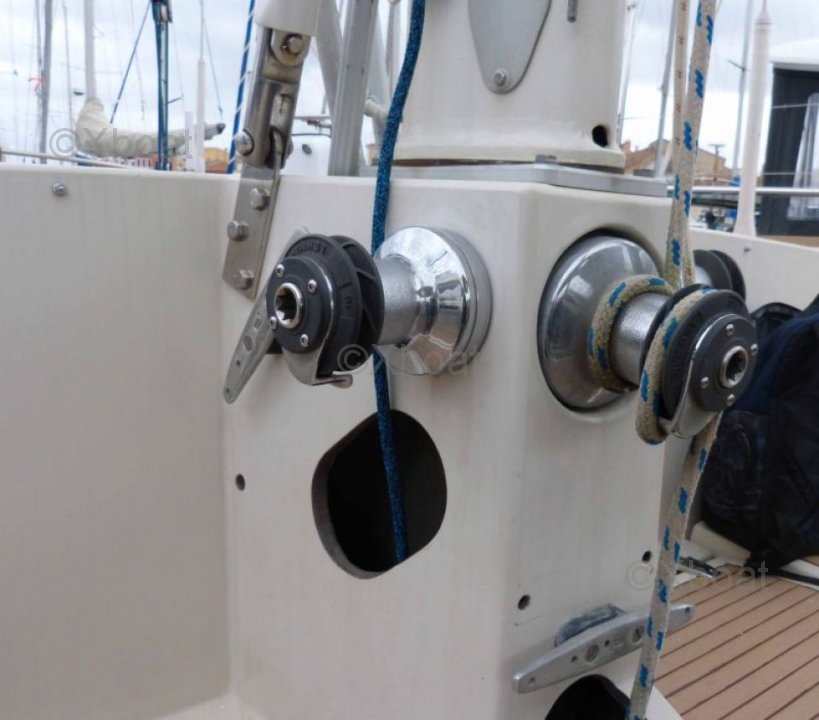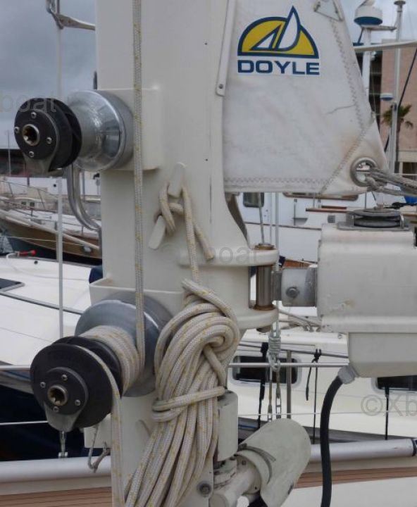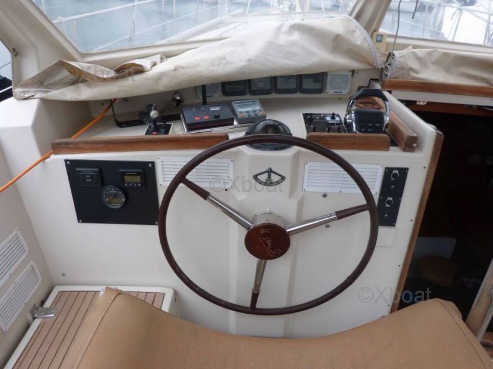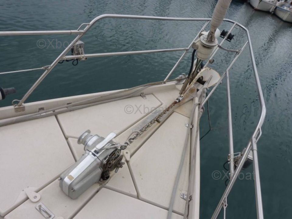 The Amel Mango is equipped with a long keel and a bronze rudder, which gives it excellent stability and good sea-keeping abilities. The cockpit is spacious and well-protected, offering optimal comfort for maneuvers and relaxation.