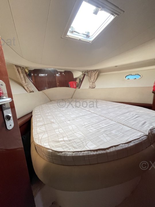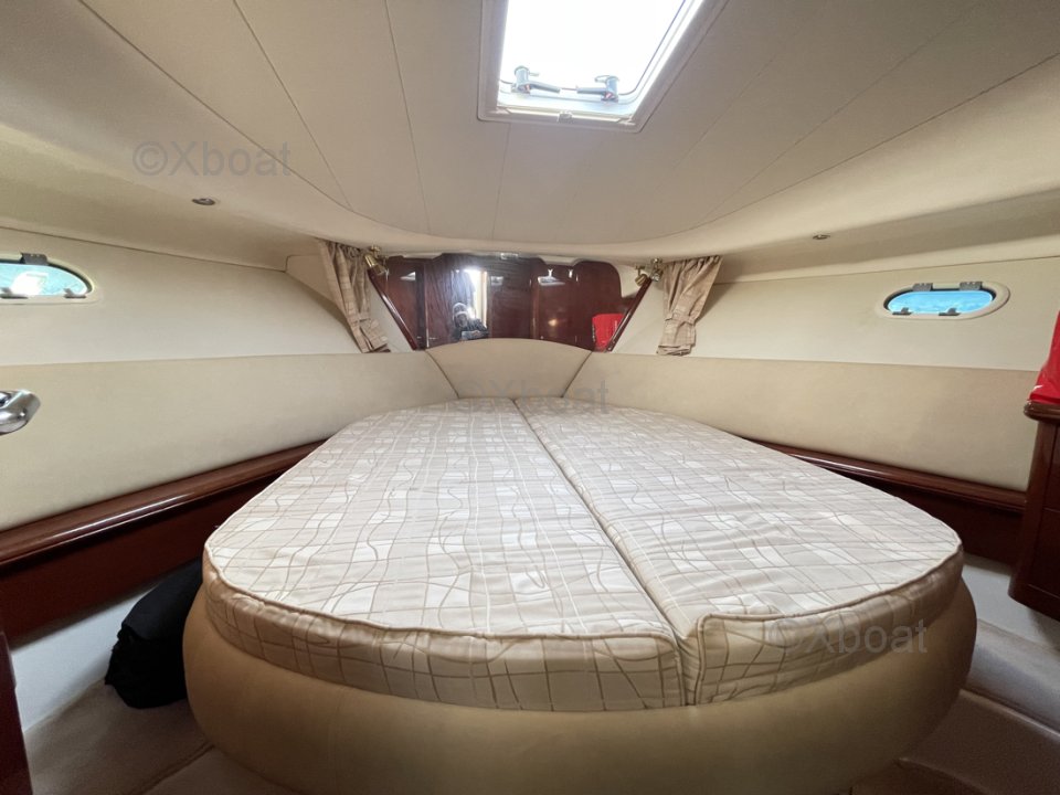 Exterior layout: The cockpit is generous and offers a pleasant living space. The fore deck is also spacious, ideal for relaxation. The boat is also equipped with a swim platform with a ladder, making it easy to access the water.