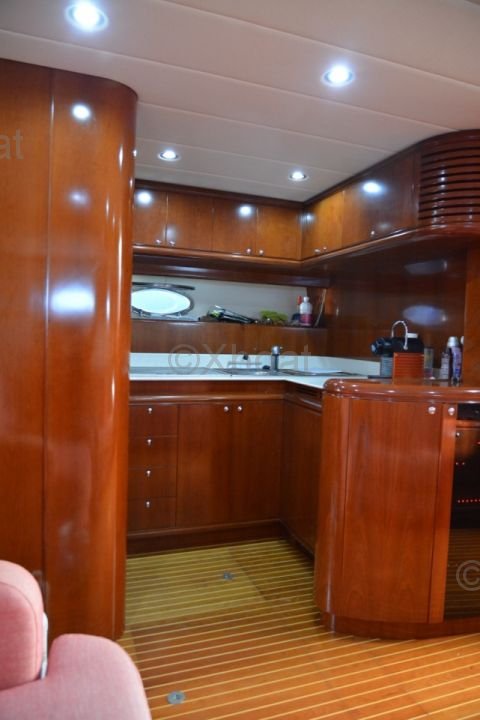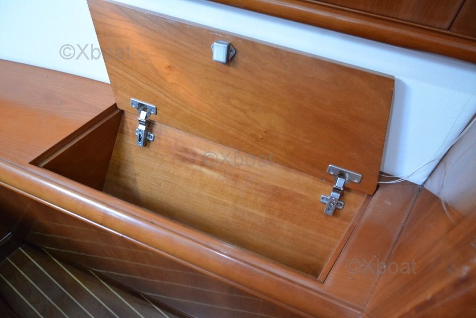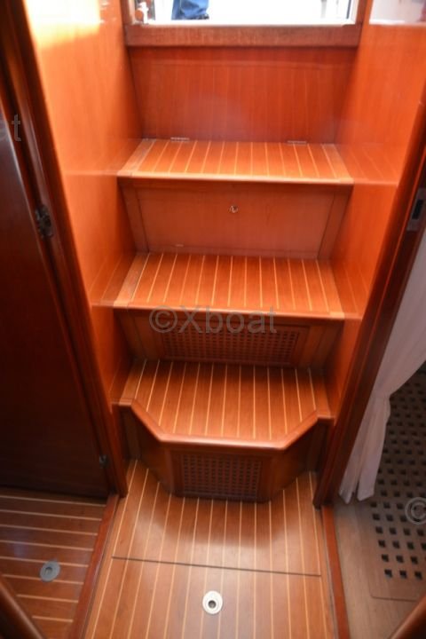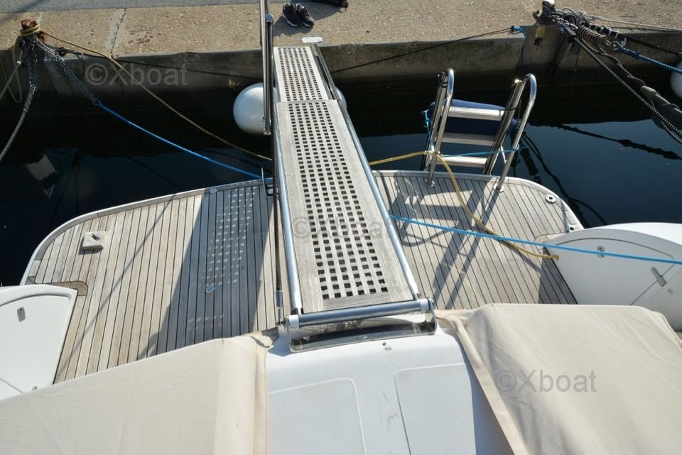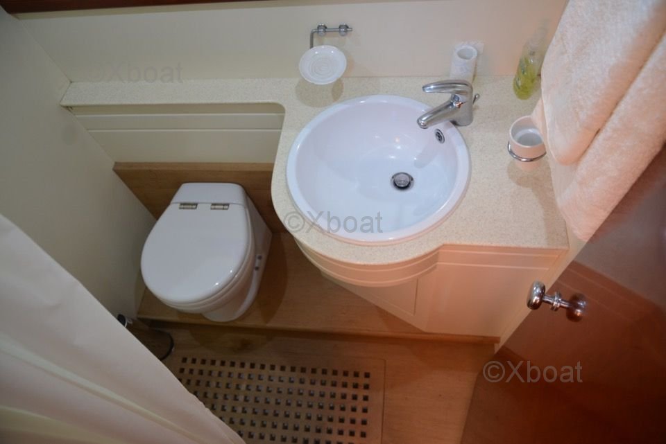 The interior of the boat is designed with high-quality materials, offering a luxurious and spacious environment. The cabins are equipped with comfortable beds, private bathrooms, and abundant storage. The salon and cockpit are designed to maximize living space and offer breathtaking views of the horizon.
