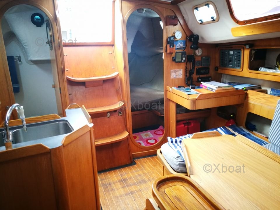 The interior of the FEELING 326 is spacious and well-designed, with a comfortable main cabin and berths for 6 people. The galley is well-equipped and has everything needed to prepare meals on board. The cockpit is wide and offers enough space to relax and enjoy time at sea.