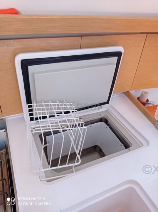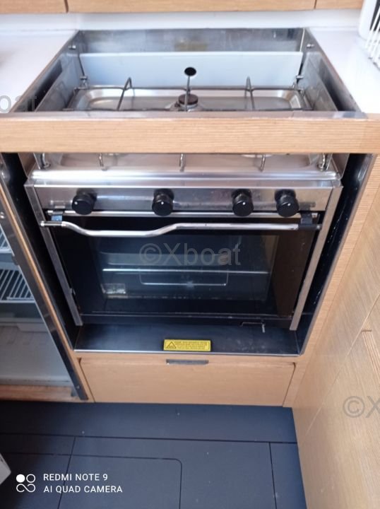 Interior Layout: The Elan 444 Impression features three double cabins, providing comfortable living space for up to six people. The kitchen is well-equipped with a stainless steel sink, a refrigerator, and an oven. The salon is spacious and bright, with large windows offering an unobstructed view of the horizon.