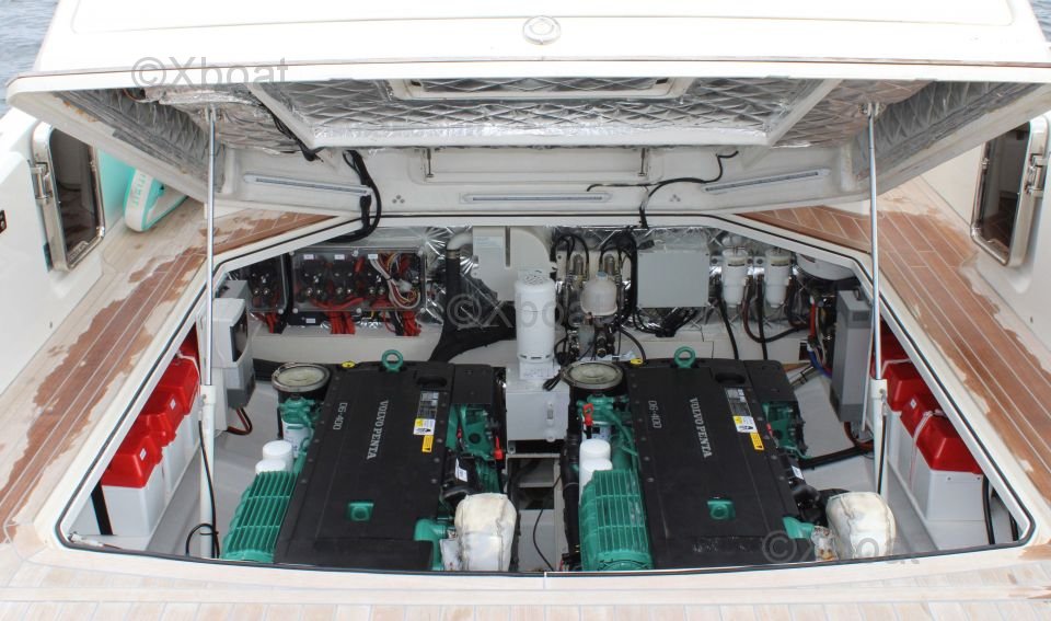 The SACS REBEL 47 is equipped with numerous safety features, such as a radar, GPS, compass, VHF, and a collision detection system. It also includes an electric anchor, a bow and stern windlass, and a water desalination system.