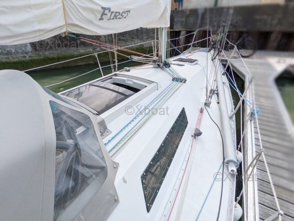 The First Class 10 is built with a fiberglass-reinforced polyester hull, offering good resistance and increased durability. The lead keel ensures optimal stability and good performance under sail.