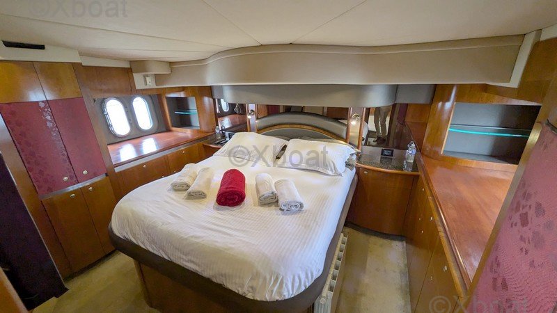 The VOLVO D12-675 engines of 2 x 675 HP offer direct shaft transmission with water cooling. With a fuel capacity of 1,900 liters distributed over 2 tanks, this boat has 785 hours of use and a speed of 23 to 33 knots. Fuel consumption is approximately 100 L/h for both engines.