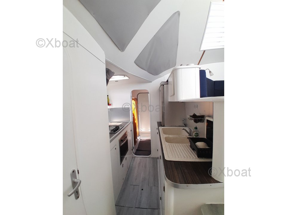 The Privilege 42 is a cruising catamaran designed by the Jeantot shipyard, known for its robust and comfortable constructions. This boat is ideal for sailing enthusiasts seeking a perfect balance between performance and comfort.