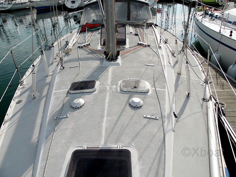 I am proud to present my SUN LEGENDE 41, a legendary sailboat from Jeanneau, known for its seaworthiness, balance under sail, and robustness. Designed for offshore cruising and racing, this 1986 model remains a reference among large production sailboats thanks to its high-performance hull designed by architect Doug Peterson and its solid polyester laminate construction.