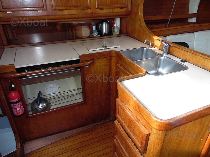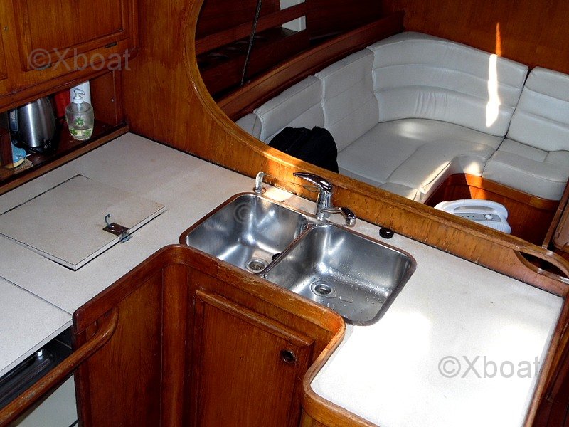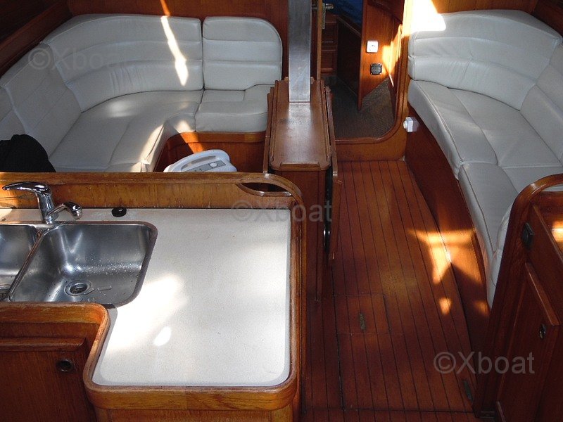 With its 12.25 m length and 3.94 m beam, my SUN LEGEND 41 offers generous volumes, a deep and well-protected cockpit, and a spacious and functional interior. The version offered is equipped with two double cabins and a cozy saloon, making it an ideal boat for family cruising or large crews. The interior fittings, including kitchen, bathroom, and numerous storage spaces, are in good condition.
