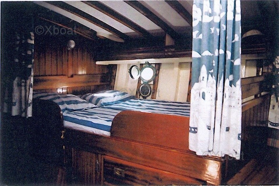 The Boudignon Auric Ketch is renowned for its stability and maneuverability, thanks to its long keel and perfect balance between fore and aft sails. The auric mast allows for optimal sail distribution, offering great versatility and ease of handling.