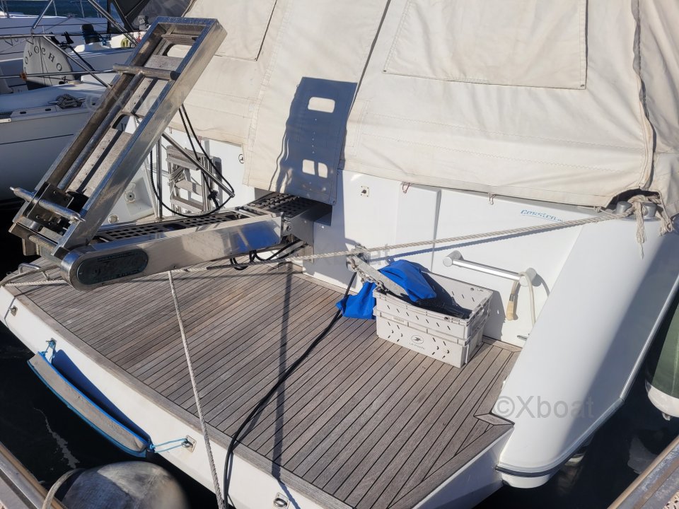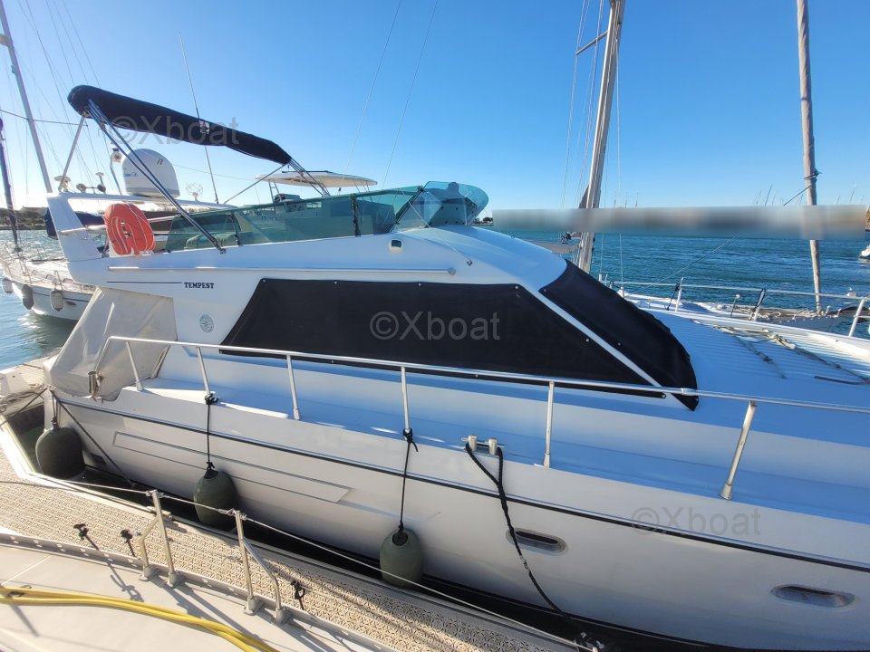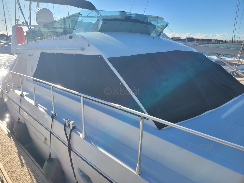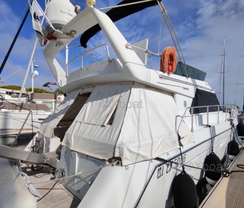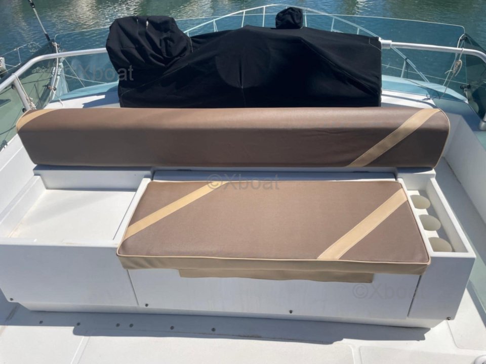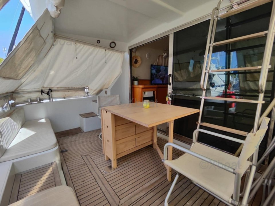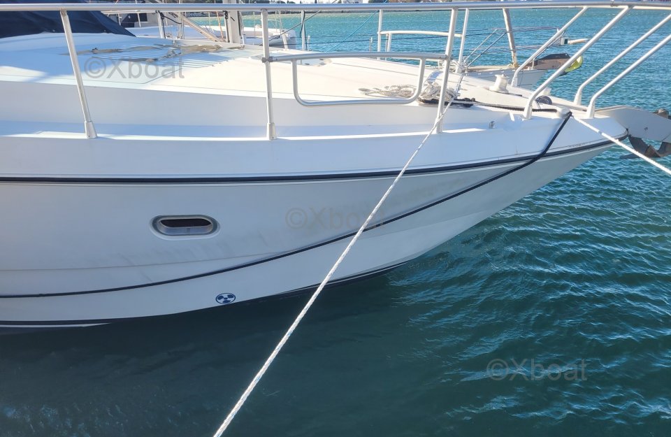 After several years of faithful service, I have decided to part with this superb boat. Seaworthy, spacious, and comfortable, it is particularly pleasant to live on and sail. The exterior upholstery has been redone, the engines are maintained every year, and I only take a few day trips each year, so they have very few hours on them. The flybridge is particularly spacious compared to boats of the same range and era.