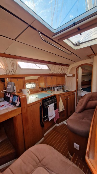 The Sun Odyssey 36 offers a spacious and well-designed interior with high-quality finishes. It features two double cabins, a well-equipped galley, and a complete bathroom. Storage spaces are abundant, allowing you to store everything necessary for extended voyages.