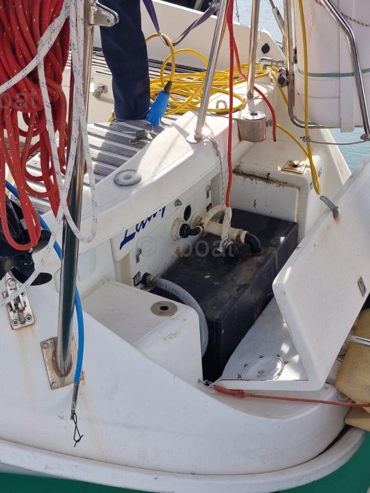 This model is fully equipped for solo navigation. Stainless steel arch, stainless steel sun awning, roof cover, free-standing steering wheel, solar panels, life raft, lifelines, AIS, electric windlass with dual controls, 15 KG ROKEMA anchor + 1 strong, boomkin, alba boom vibration damper, 2021 stays, sails 7/10. AIS/TV/VHF/NAVTEX antennas on stainless steel mast, horn on mast, aluminum gangway, swim ladder, semi-rigid dinghy, 2.5 HP engine.