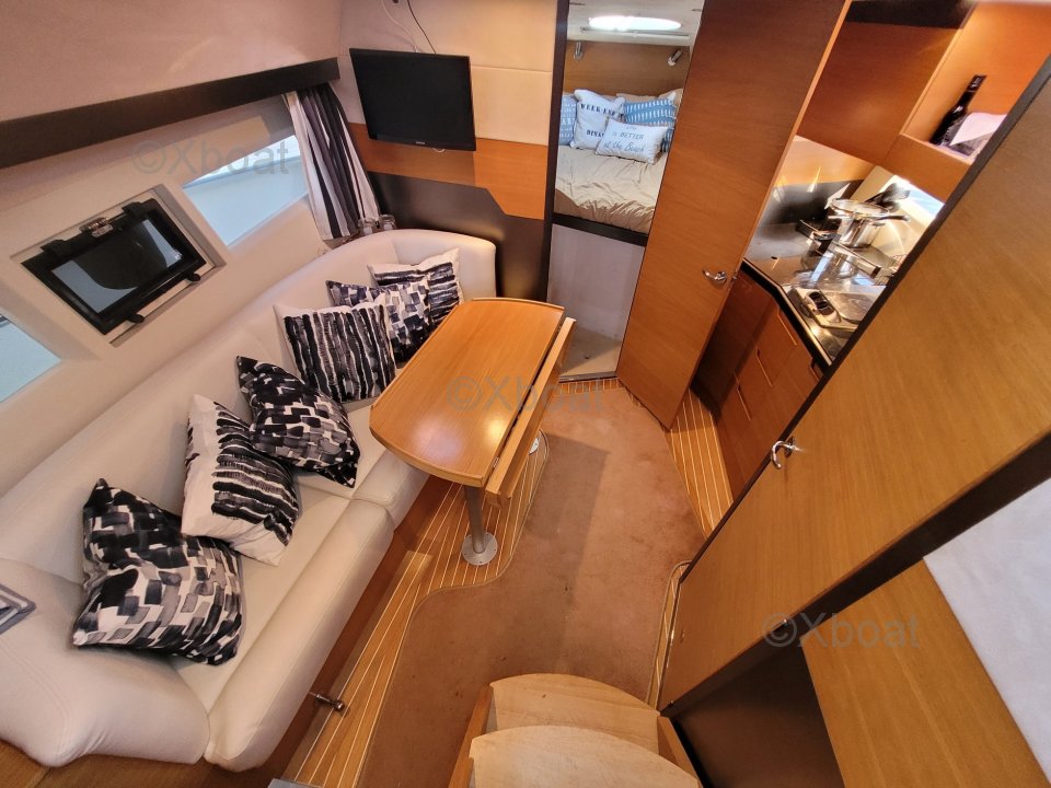 This Galeon 325 HTO stands out thanks to its excellent balance between performance and comfort. With its generous cabins and its well-sheltered cockpit, it is equally suited for short trips and longer cruises. Its meticulous maintenance and very low engine hours make it a reliable turn-key used boat. Ideal for boaters looking for an economical model without compromising on quality!