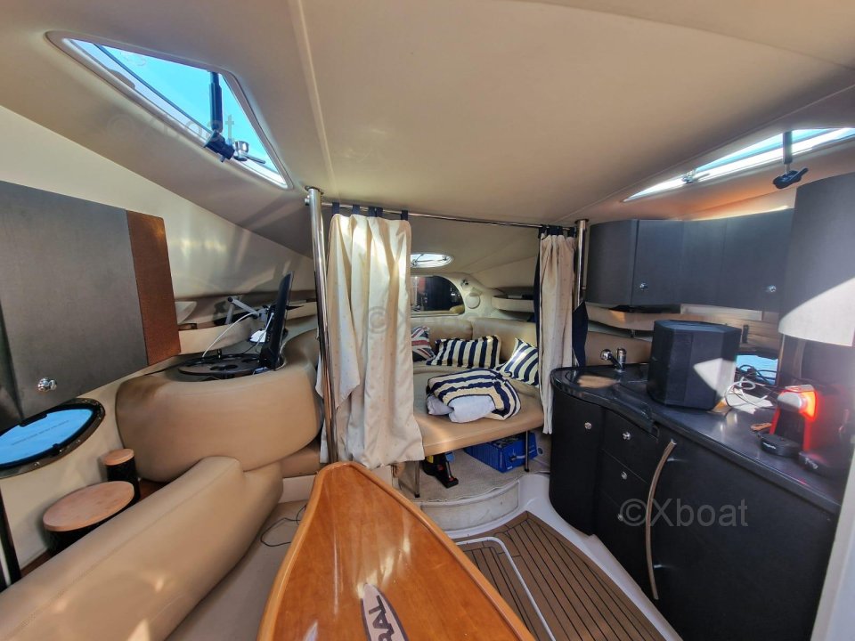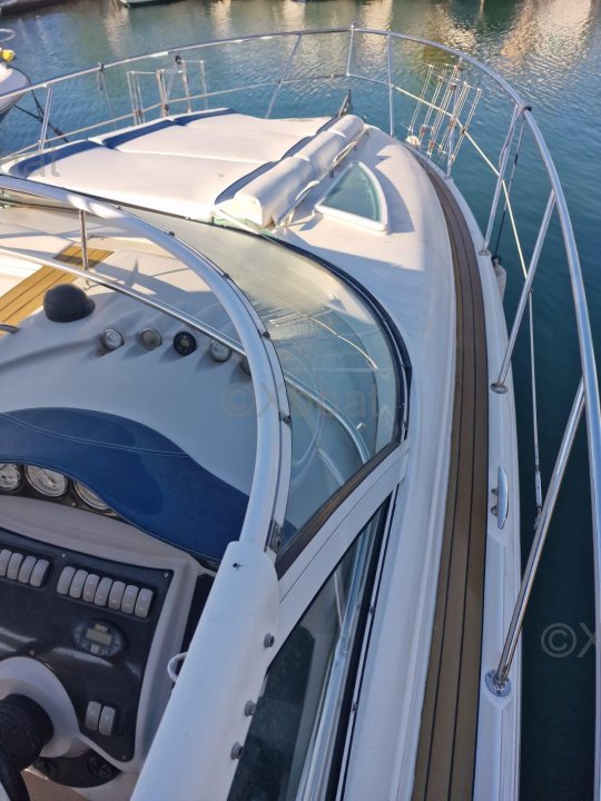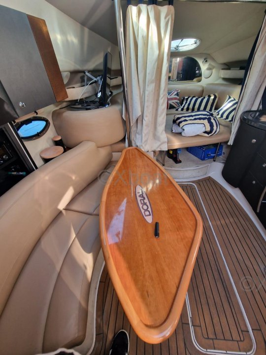 High-quality construction, the DORAL ELEGANTE 345 is a well-equipped pleasure boat featuring a deck with multiple sunbathing areas and a large aft deck with a swim ladder for bathing.
