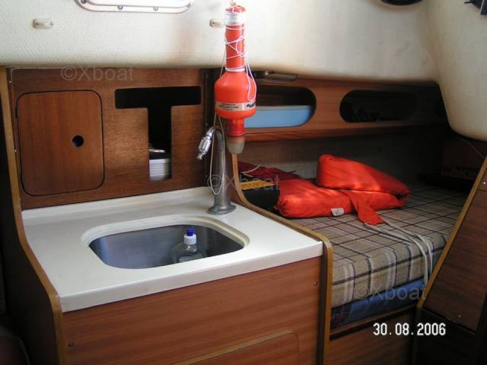 The Alpa 740 is equipped with a spacious and comfortable cockpit, perfect for long days at sea. The deck is well-designed to facilitate maneuvers and provide a good grip. Inside, the cabin offers a pleasant living space with a well-equipped kitchen and optimized storage.