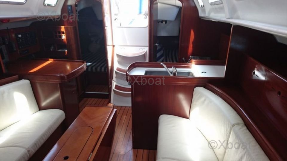 Interior: The interior of the First 40.7 is spacious and well-designed, with high-quality finishes. It can comfortably accommodate up to 8 people on a cruise, with two double cabins and a forward cabin. The galley is well-equipped, and the salon offers a pleasant living space.