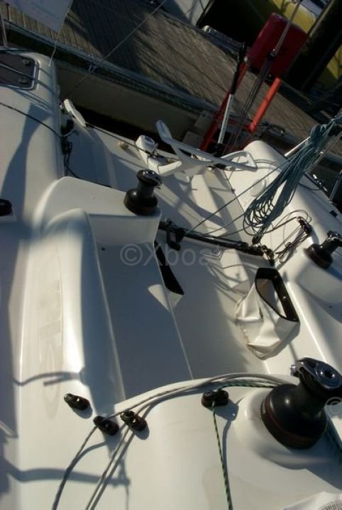 Design and Construction: The JPK 960 was designed by the JPK design office, known for its innovations and racing performances. The hull is made of polyester sandwich with carbon reinforcements, offering excellent rigidity and optimal lightness. The deck is also made of polyester sandwich, with carbon reinforcements for better resistance and weight reduction.