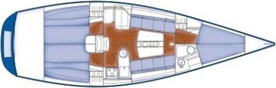 Inside, the boat offers a comfortable interior layout with high-quality finishes. The cockpit is generous, providing ample space for sailing and relaxation. The helm station is well-thought-out, with all necessary navigation instruments within easy reach.