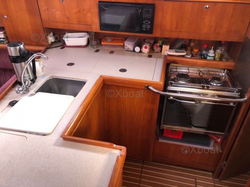 The Hunter 356 Legend is equipped with a spacious and ergonomic cockpit, perfect for long sailings. The cabin offers a comfortable living space with a well-equipped kitchen, a bathroom, and accommodation for several people. The interior design is modern and functional, with high-quality materials to ensure durability and comfort.